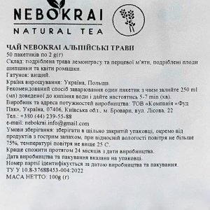 Чай «Альпійські трави» для чашки ТМ Nebokrai (50 пакетиків)