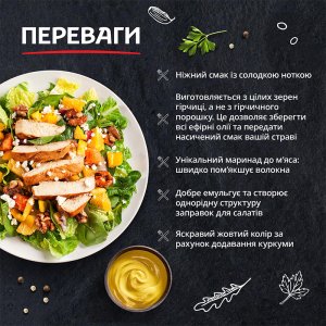 Гірчиця “Американська” Торчин негостра, має мякий ніжний смак і теплий гірчично-медовий колір.