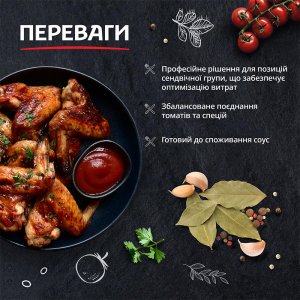 | Склад | вода питна, цукор, паста томатна (18%), оцет спиртовий, крохмаль модифікований кукурудзяний, сіль кухонна, прянощі сушені мелені (лавровий лист, кориця, гвоздика, мускатний горіх) |